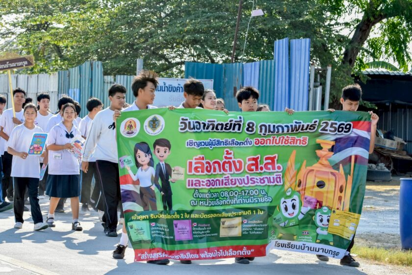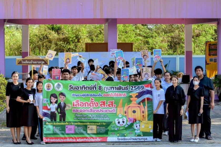 โรงเรียนบ้านมาบกรูด นำโดย นางสาวฉัตราภรณ์ ธนิทธิพันธ์ ผู้อำนวยการโรงเรียน คณะครูบุคลากรทางการศึกษา และนักเรียน จัดกิจกรรมรณรงค์สร้างความรู้และความเข้าใจ ความสำคัญของการไปใช้สิทธิ์เลือกตั้งและลงประชามติ เกี่ยวกับการเลือกตั้ง ก่อนวันที่ 8 กุมภาพันธ์ พ.ศ. 2569